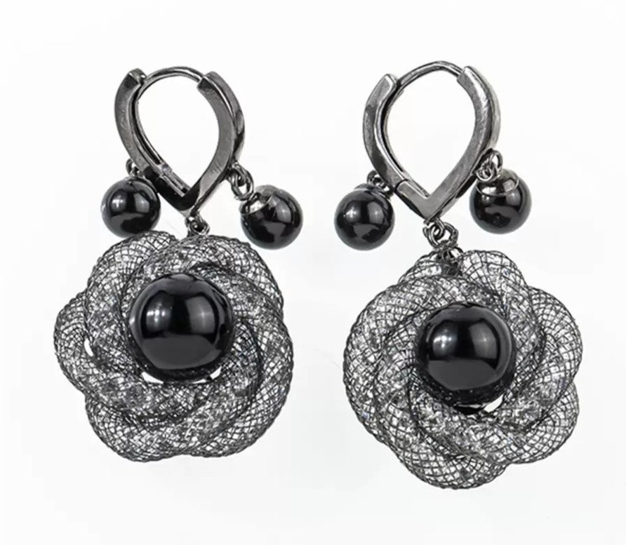 Black flower mesh crystal earrings will bring a touch of whimsy to any outfit. They're topped with cubic zirconia stones for extra sparkle, so they'll shine and shine as you move from day to evening